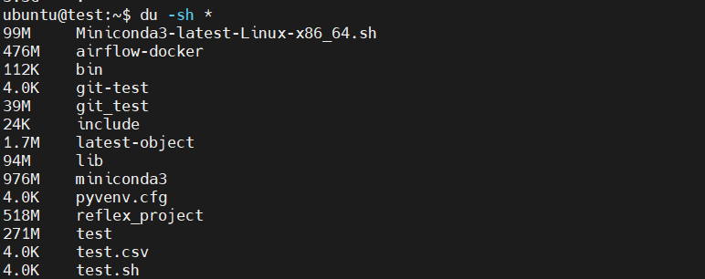 du -sh * 명령어를 사용하면 숨겨진 파일의 용량이 나오지않아 확인이 어려웠다.