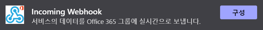 팀즈 채널의 커넥터에서 Incoming Webhook을 구성하면, Webhook URL을 얻을 수 있다.