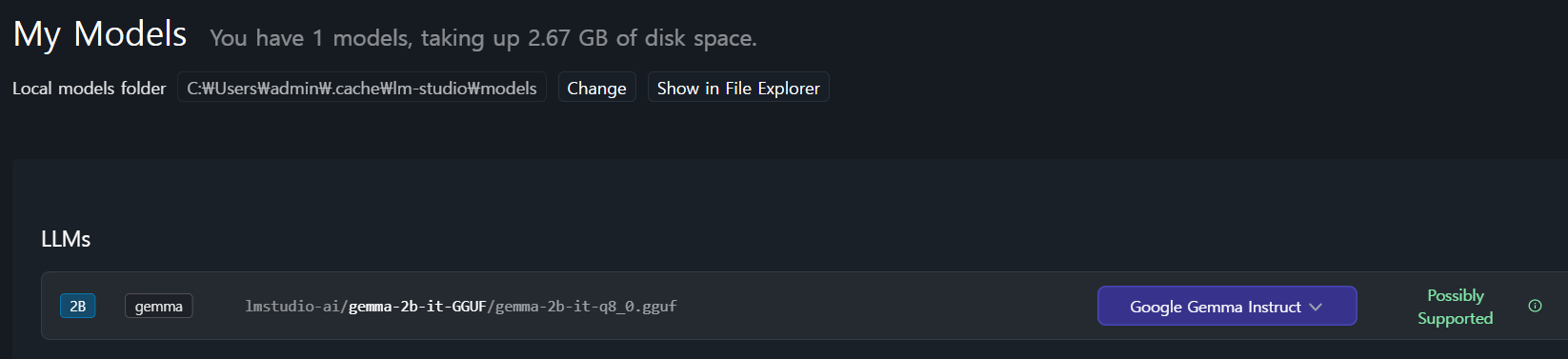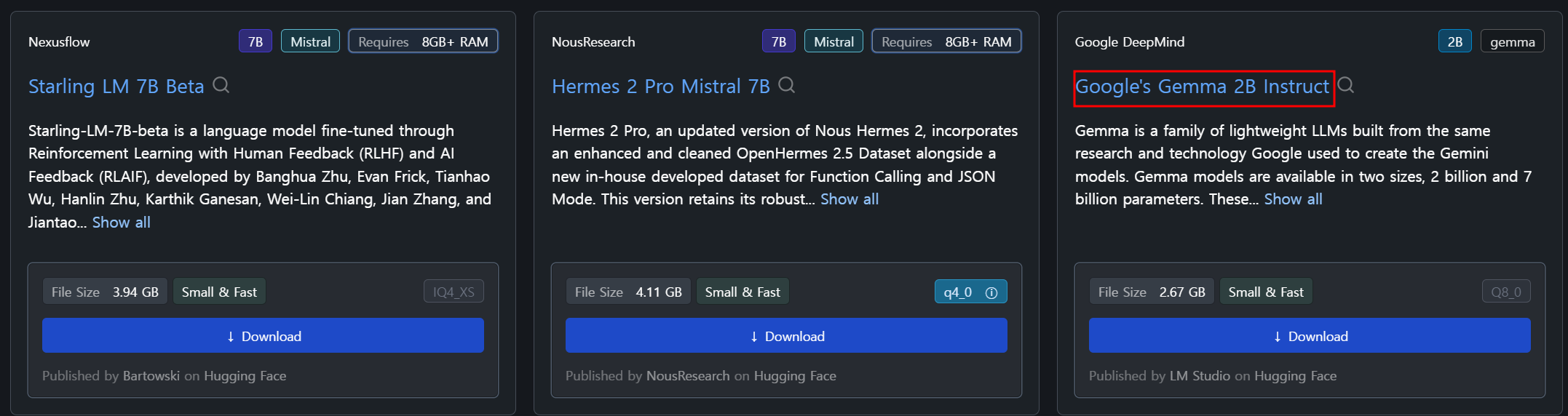 나는 테스트용으로 홈 화면에 Gemma의 경량 모델을 설치했다.