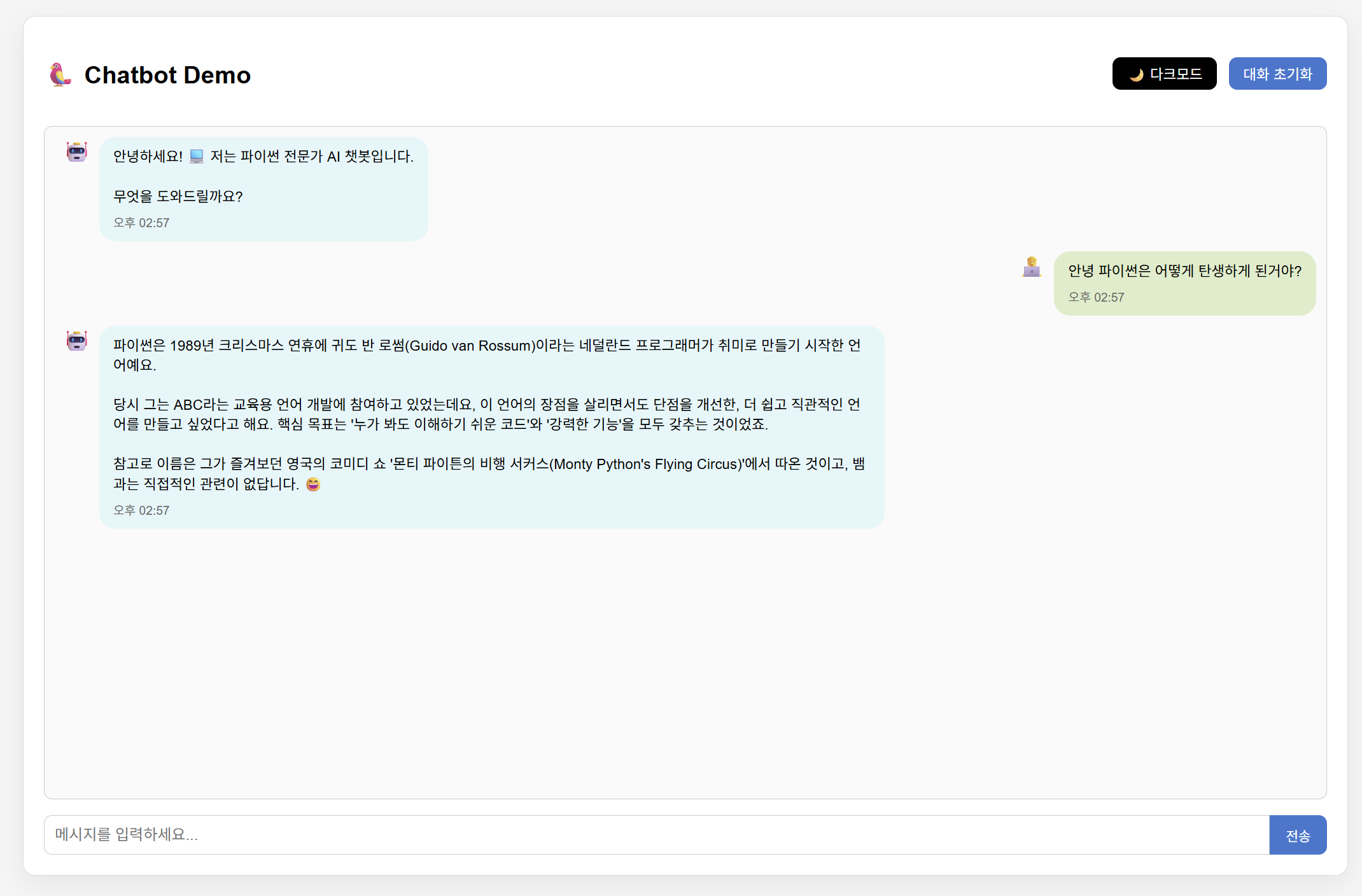 이 과정을 통해 얻은 가장 큰 성과는 AI 챗봇의 전체 아키텍처를 처음부터 끝까지 직접 손으로 구현해봤다는 점입니다.