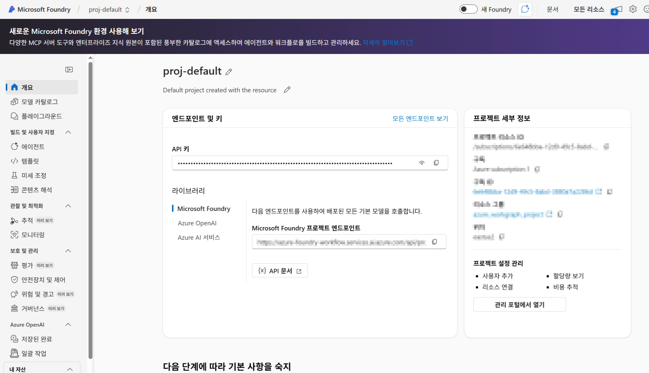 Azure AI Foundry는 이런 요소들을 하나의 콘솔과 프로젝트 단위로 묶어서 다룰 수 있게 해줍니다.
